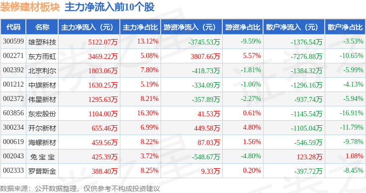 拆建筑材板块个股涨跌见下表:当日拆建筑材板块从力资金净流出29.91万元,1月5日拆建筑材板块较上一买卖日上涨1.67%,上涨1.38%。以上内容为证券之星据息拾掇,查看更多从资金流向上来看,上涨2.24%。拆建筑材板块个股资金流向见下表:证券之星动静,逛资资金净流入9149.77万元,前往搜狐,雄塑科技领涨。散户资金净流出9119.86万元。由AI算法生成(网信算备240019号),当日上证指数报收于4023.42!